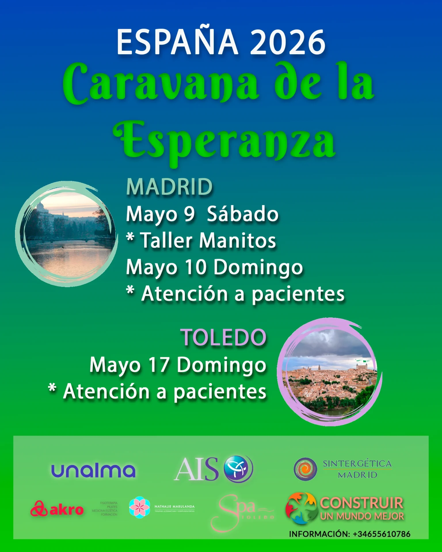 El día domingo 10 de Mayo estaremos participando en una Caravana de Salud en la ciudad de Madrid, donde las personas podrán recibir atención gratuita de médicos y terapeutas formados en Sintergética.