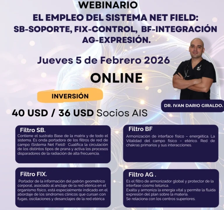 Desde Viavida y la AIS te invitamos a un encuentro terapéutico de profundidad con el Dr. Ivan Darío Giraldo, médico y docente de Sintergética, en un webinario de profundo conocimiento del Sistema NET FIELD.