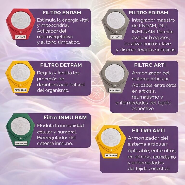 - EDIRAM: Integrador maestro de ENRAM, DETRAM e INMURAM. Permite evaluar bloqueos, localizar puntos clave y diseñar terapias sinérgicas.